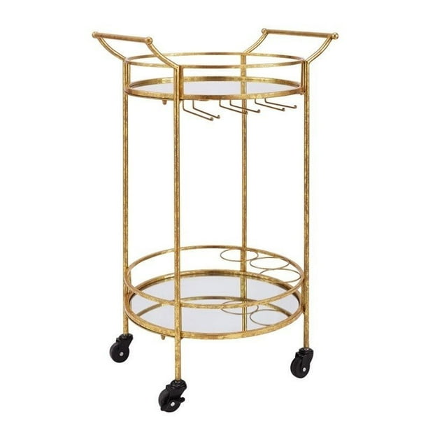 Round Metal Bar Cart Gold Linon Target from target.scene7.com Enjoy free shipping on most stuff, even big stuff. I'm always hesitant to buy gold trim items because the gold can sometimes be more of a yellow tone or super shiny. Home bar cart, bar on wheels, with wine rack and glass rack, kitchen living room storage cart, wood and metal materials, gold. Impress your friends with this elegant, vintage chic round gold metal bar cart with handles and mirrored tops. Collection by carter's bar carts. Depending on the metals or metal compounds that gold is alloyed with are wide variations in color. 32.25wx16dx36h *made in china *care instructions: The cart base is made of iron with gold and gold leaf finish.