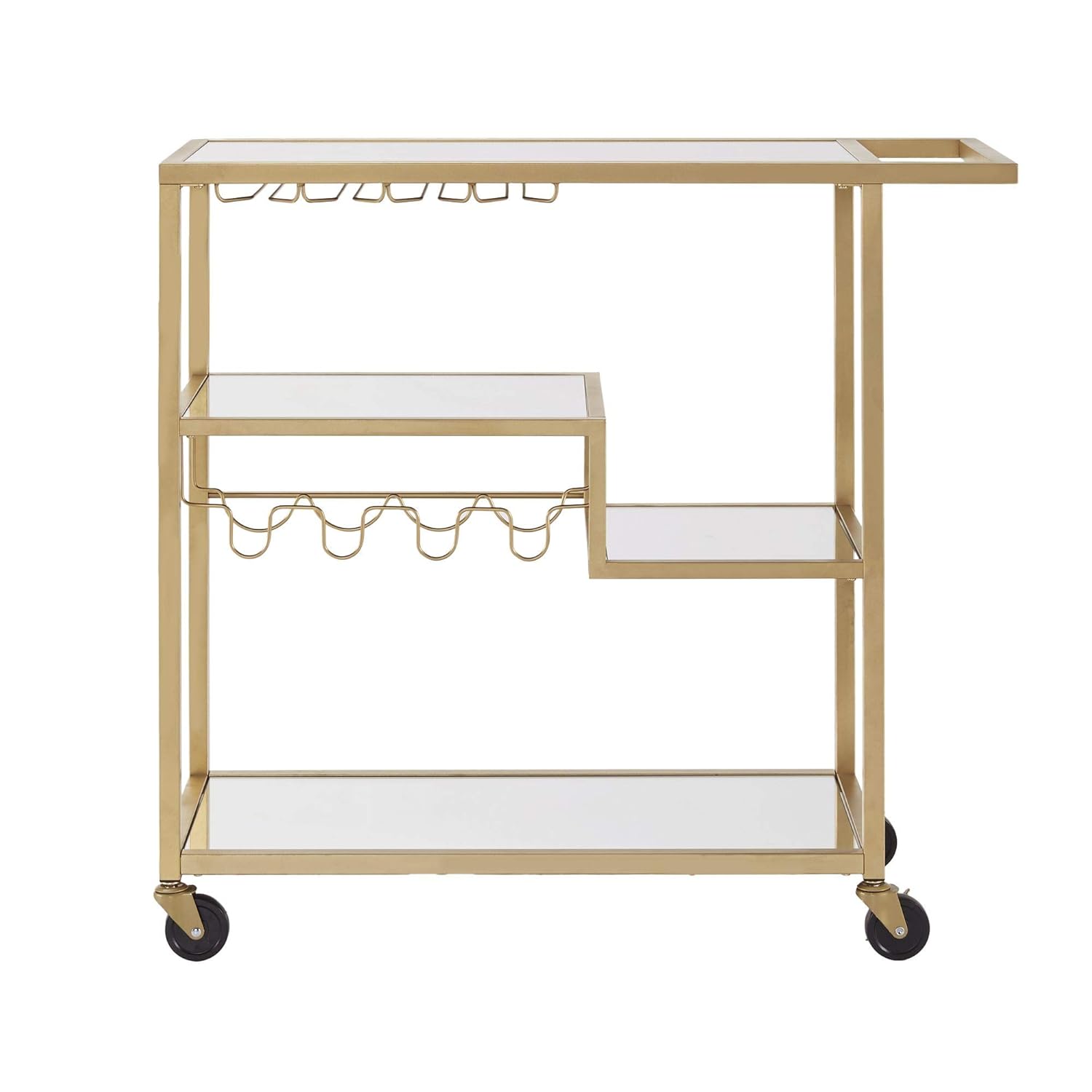 1 from Not only are they ideal for serving cocktails and keep every party alive, but also act as a great surface to set out your entertaining accessories, or even food when you're hosting a big family reunion dinner. Henn&hart mirrored golden brass bar cart, gold, 36 h x 21 l x 21 w. Metal rolling bar carts are a stylish choice for modern and industrial decor. You can keep some of your fancier glasses on them to showcase to guests. If you think about another bar cart let us know and we will look at it as there are many other bar cart choices. The cart base is made of iron with gold and gold leaf finish. Though bar carts are fairly common in households and widely available, the styles have changed over time. Our trained experts have spent days researching the best bar carts in 2020: